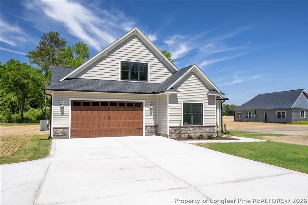 1ew construction on 1 rural acre with NO restrictions in the desirable Plain View area of Sampson County! Just minutes to I-95 for easy commuting! This thoughtfully designed home features 3 bedrooms, 3 full baths, and a spacious bonus room. The open-concept living area offers vaulted ceilings, a cozy fireplace, and custom built-in cabinets. The kitchen is beautifully appointed with a farmhouse sink, tile backsplash, stainless steel appliances, and a large pantry, perfect for everyday living and entertaining. The primary suite is a true retreat with dual walk-in closets and a stunning, spa-like bath. Upstairs, the bonus room with full bath and closet provides flexible space ideal for a guest suite, home office, or recreation area. Outback enjoy a large covered porch and separate patio and country views! Come enjoy the privacy and space of country living! Constructed by local and trusted Cumberland Homes. *Check back for updated photos as home is nearly complete