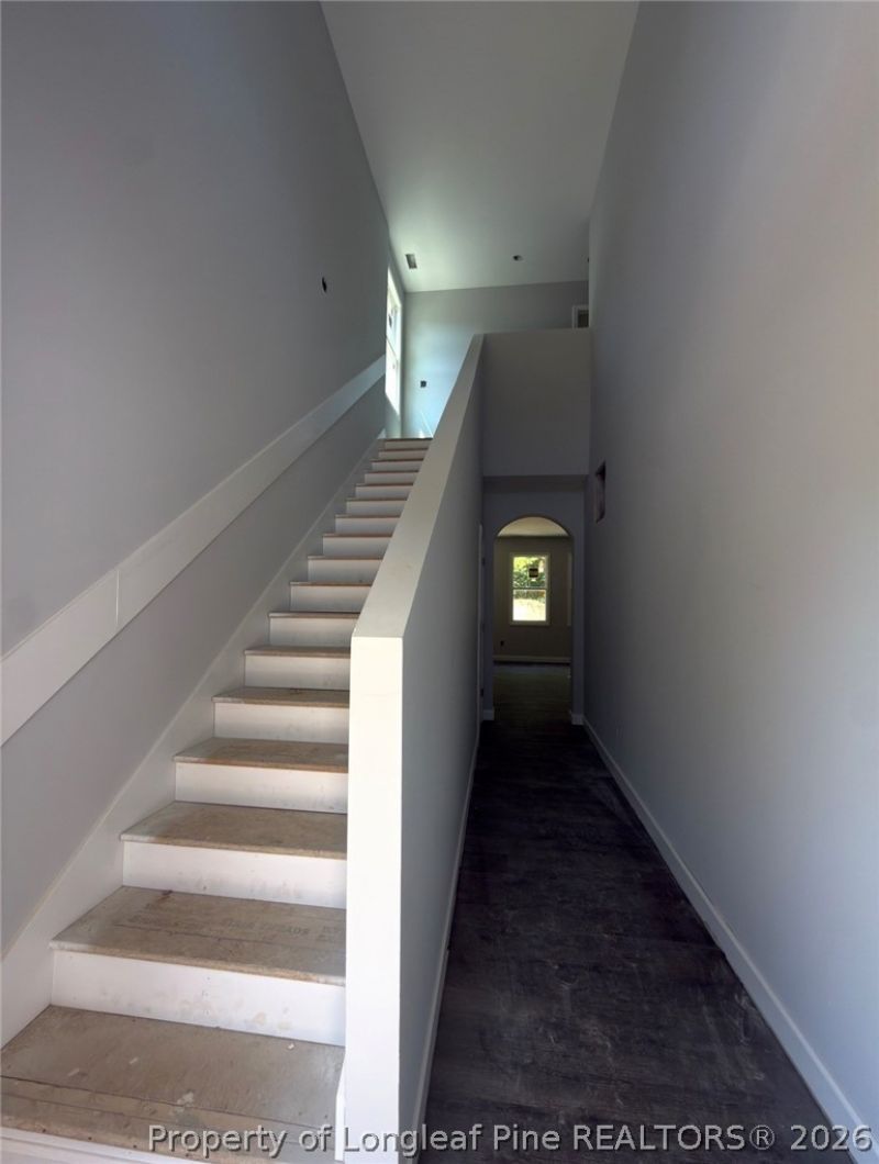 A must see large kitchen features granite countertops, stainless steel appliances, and custom cabinets with soft close drawers and doors. The downstairs area has beautiful LVP Flooring, while the upstairs features carpet in the loft and bedrooms. There is tile in the bathrooms and second floor laundry. The living room exhibits an electric fireplace with a beautiful custom surround looking into the two story foyer. The roof has architectural shingles.